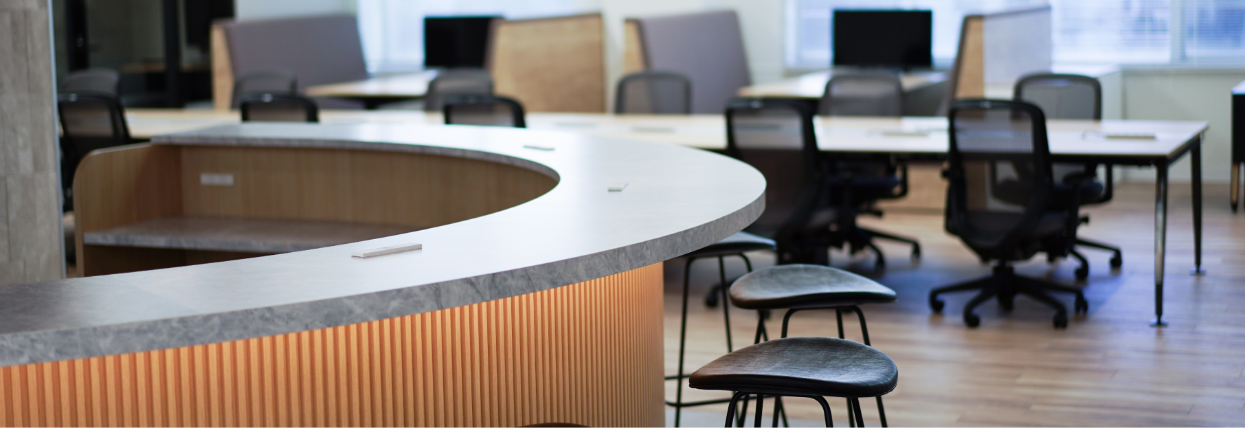 固定席はなく、その日の業務に合わせて座るフリーアドレス。